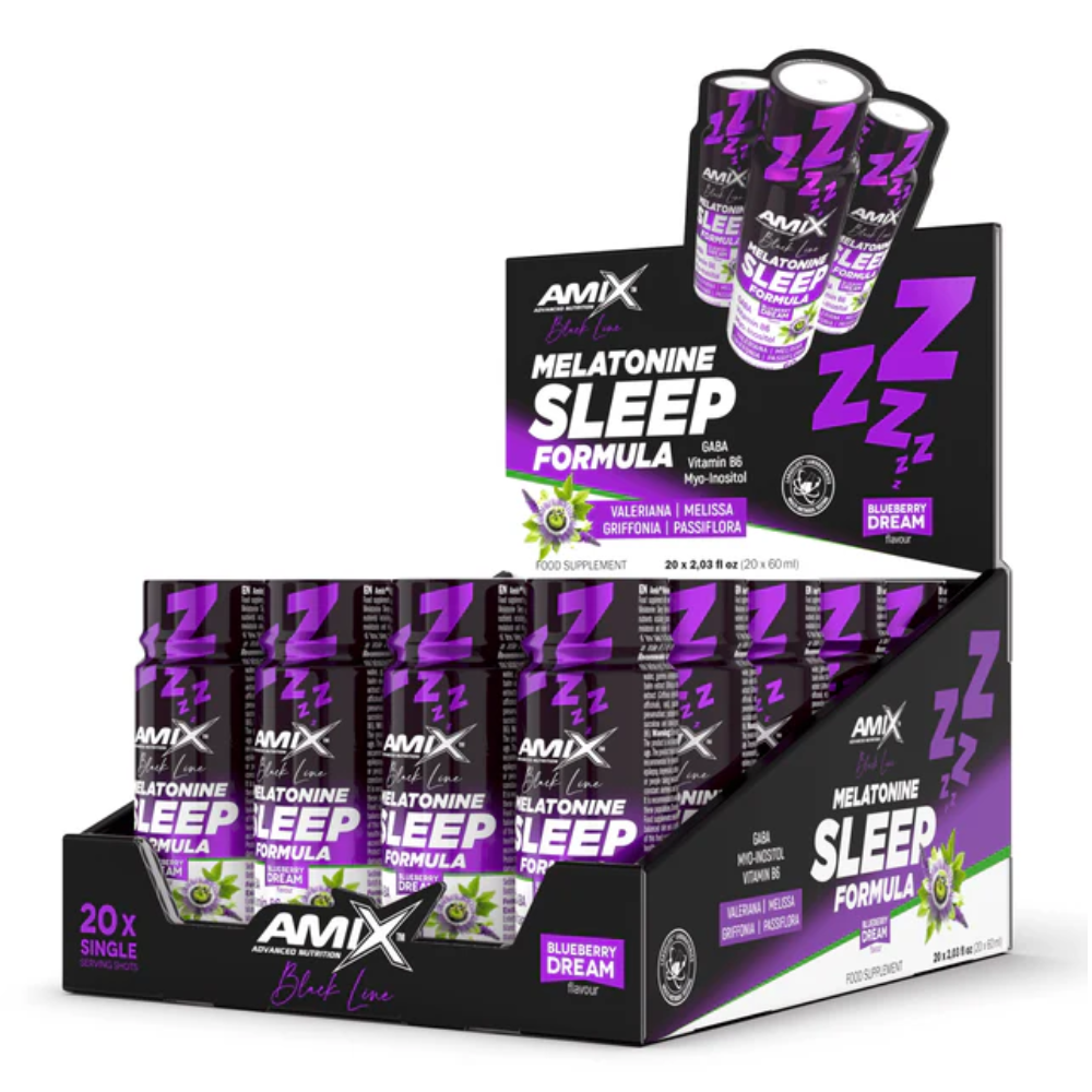 La Melatonina Sleep Formula de AMIX es un complemento alimenticio en formato ‘shot’ que combina melatonina, ácido gamma-aminobutírico (GABA), mio-inositol y vitamina B6 con un complejo de extractos herbales de melisa, raíz de valeriana y pasiflora (plantas tradicionalmente asociadas a la relajación y el descanso) y griffonia.