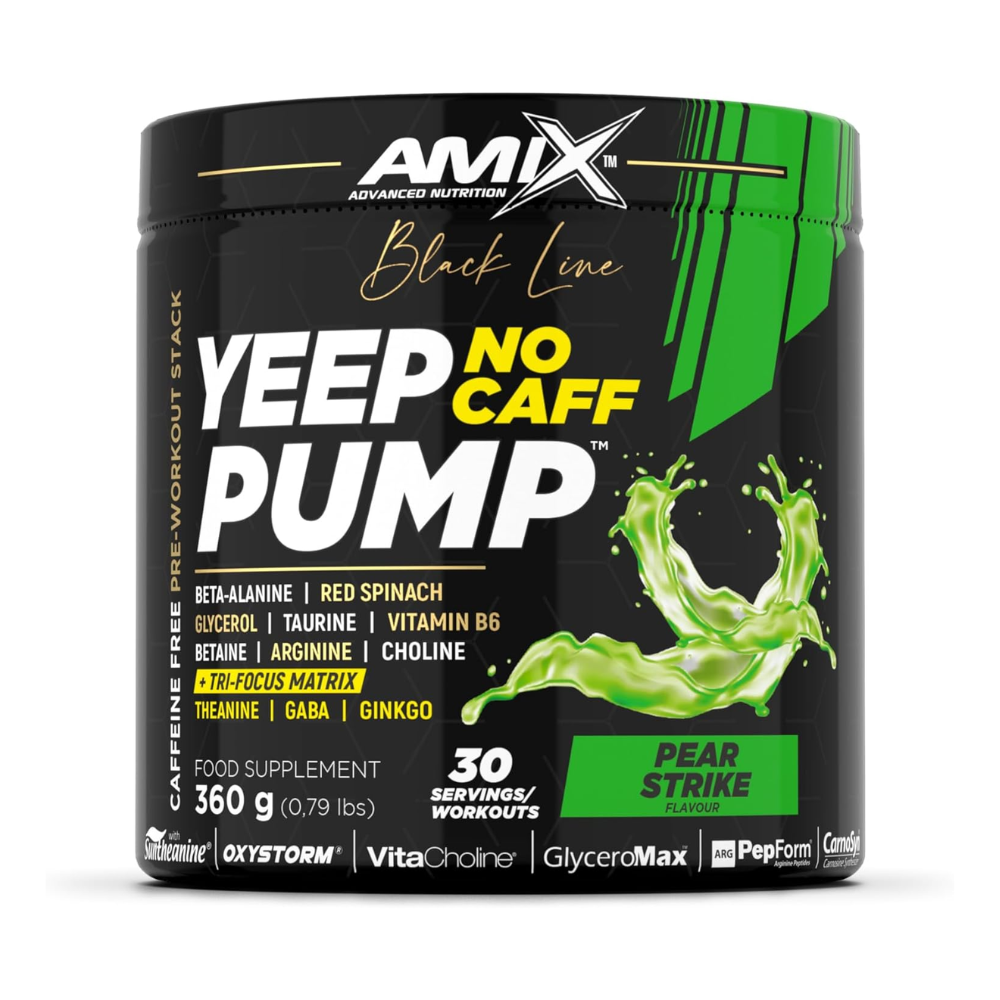Amix Nutrition presenta Yeep Pump No Caff, un suplemento sin cafeína avanzado diseñado para mejorar la vasodilatación, el rendimiento muscular y la resistencia durante el ejercicio. Este producto se destaca por su fórmula única que incluye ingredientes clave como Oxystorm, VitaCholine, GlyceroMax, PepForm y CarnoSyn, todos diseñados para ofrecer un apoyo integral al entrenamiento y mejorar la calidad del rendimiento físico.