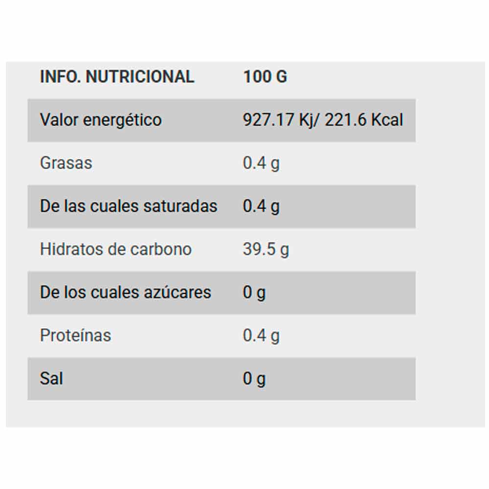 | Valor energético | 927.17 Kj/ 221.6 Kcal |