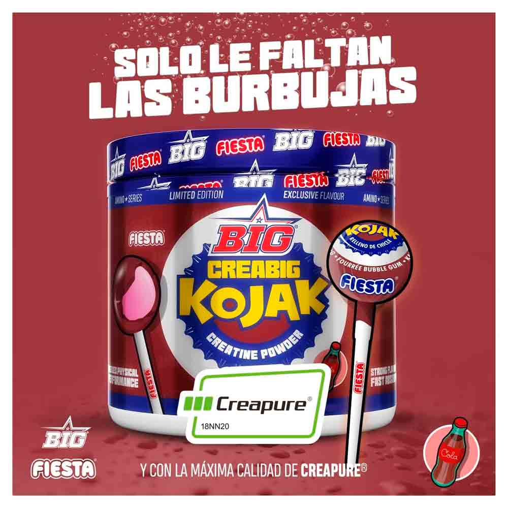 Presentamos en colaboración con Fiesta la nueva creatina CREABIG FIESTA sabor KOJAK COLA, una combinación de la mejor creatina monohidrato disponible en el mercado con la patente Creapure, el increíble sabor del caramelo Kojak Cola de Fiesta y la experiencia de tu marca de suplementación deportiva de confianza Big.