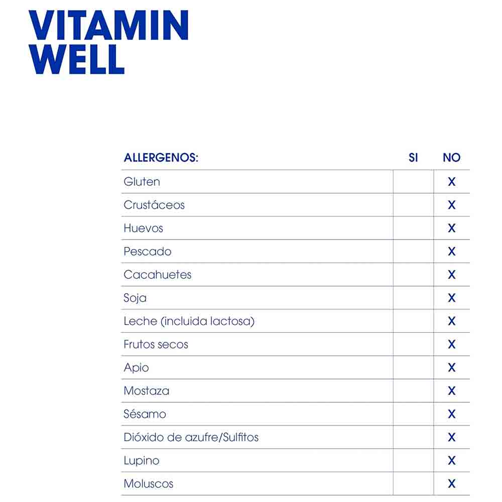 Vitamin Well Sport contiene vitaminas B6 y B12, que ayudan a reducir el cansancio y la fatiga, así como vitamina D, que contribuye a mantener el funcionamiento normal de los músculos. La bebida también contiene magnesio, que contribuye al metabolismo energético normal del organismo y al funcionamiento normal de los músculos, así como al equilibrio electrolítico. Recomendamos una dieta variada y equilibrada y un estilo de vida saludable.