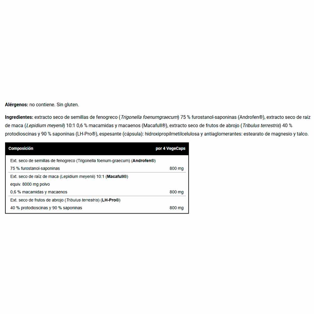 - LH-Pro: extracto de Tribulus terrestris exclusivo con 90 % saponinas y 40 % protodioscinas. Estudios científicos con animales afirman que esta planta herbácea induce la producción de testosterona.