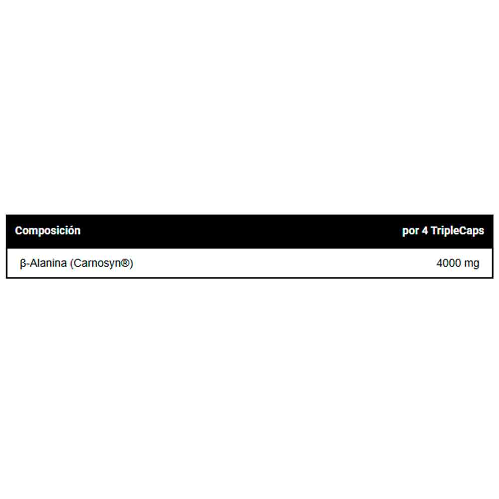 Ingredientes: β-Alanina (CarnoSyn), espesante (cápsula): hidroxipropilmetilcelulosa y antiaglomerantes: estearato de magnesio y dióxido de silicio.