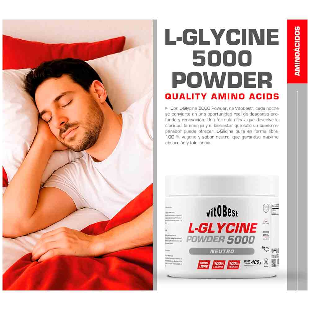 L-Glycine 5000 Powder, de Vitobest, ofrece un apoyo clave en la regulación del sistema nervioso y la calidad del sueño.