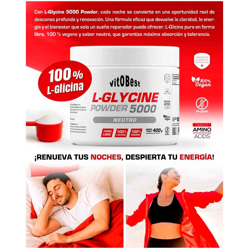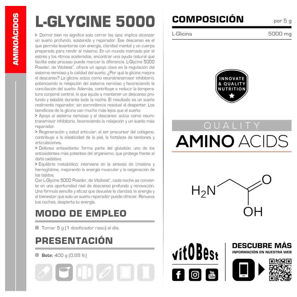 • L-Glicina pura en forma libre, 100 % vegana y de sabor neutro, que garantiza máxima absorción y tolerancia.